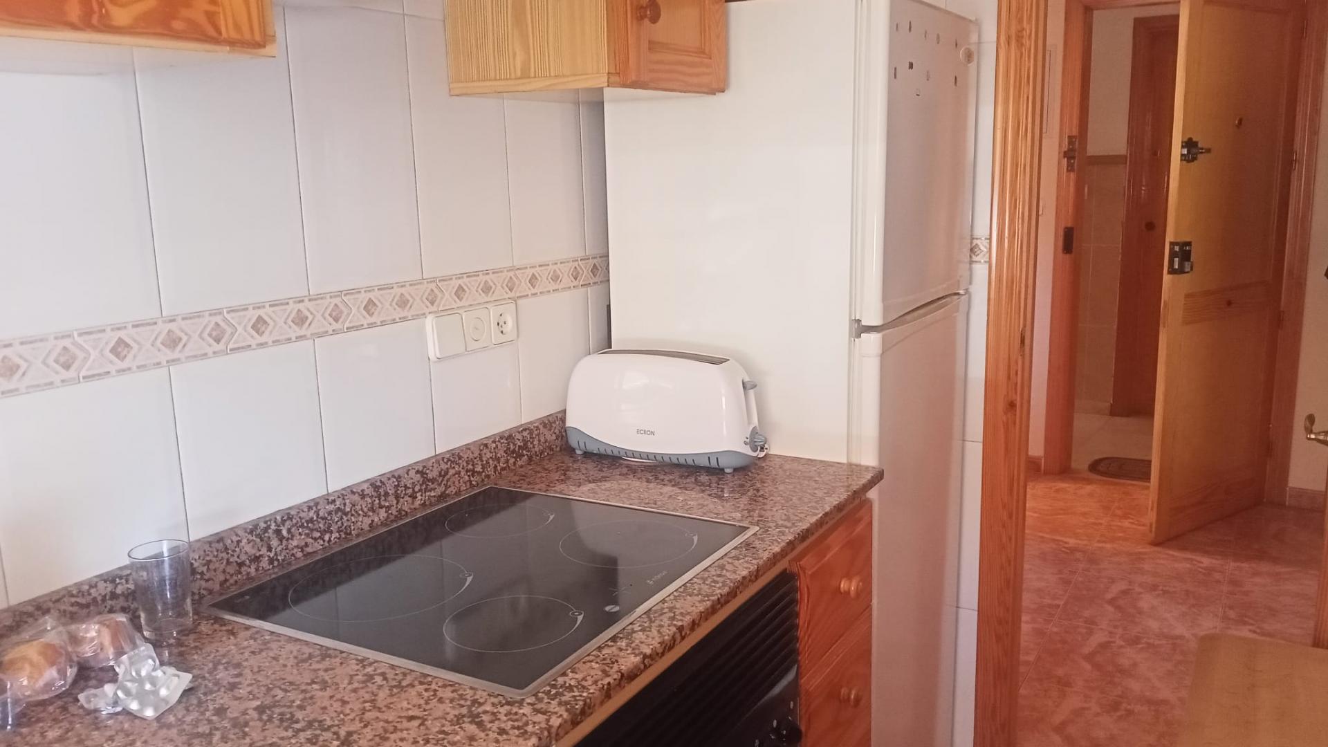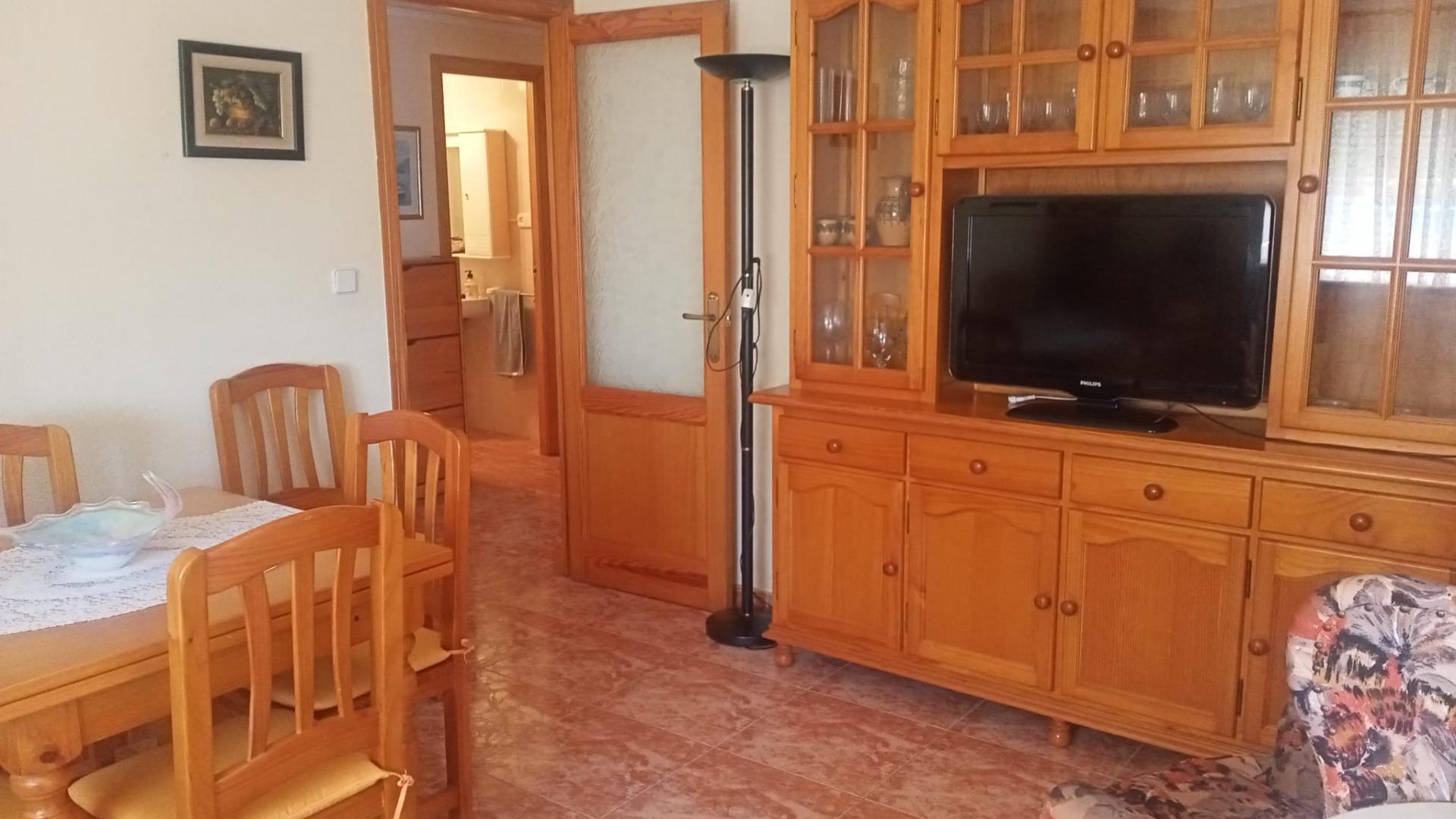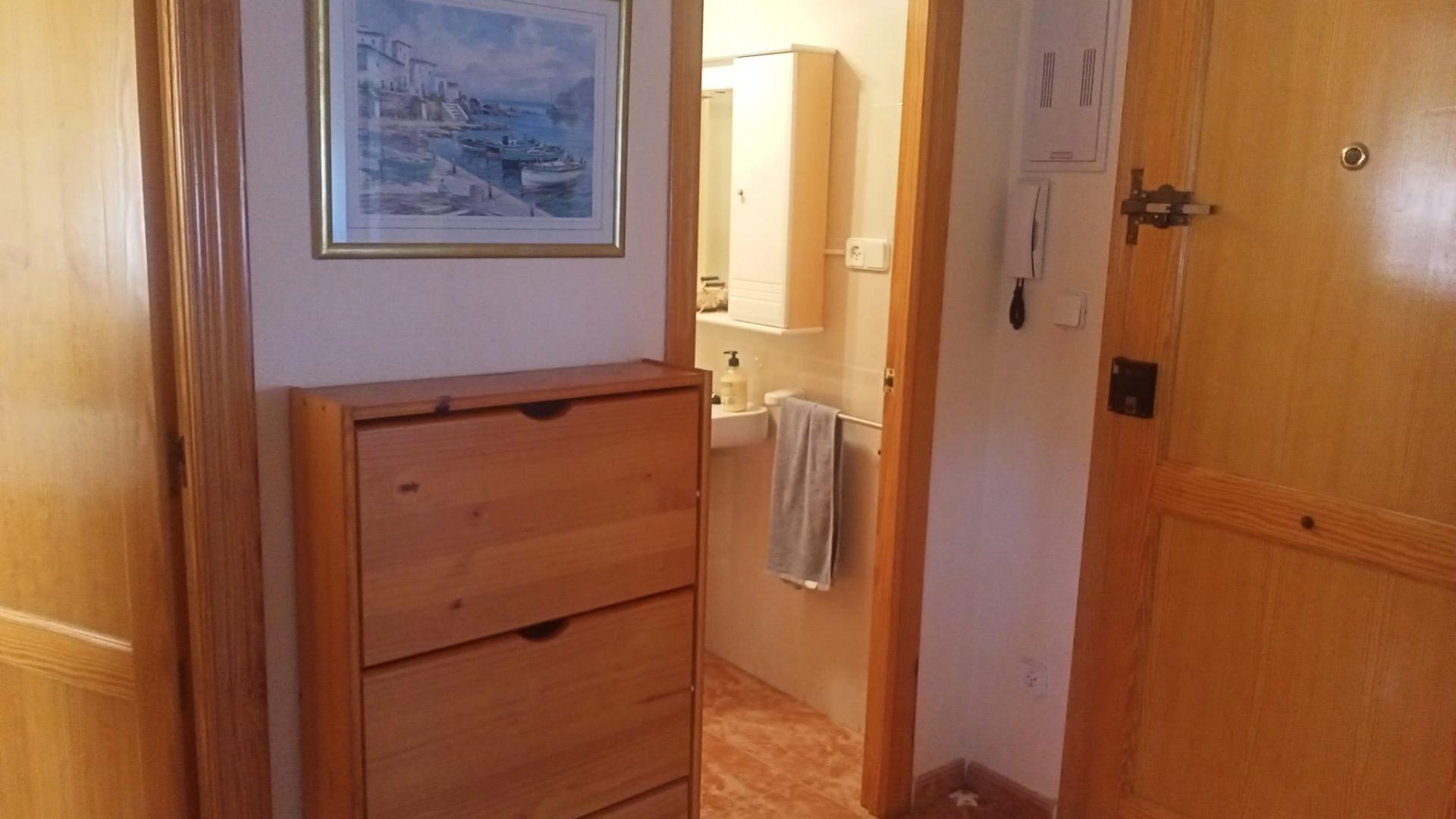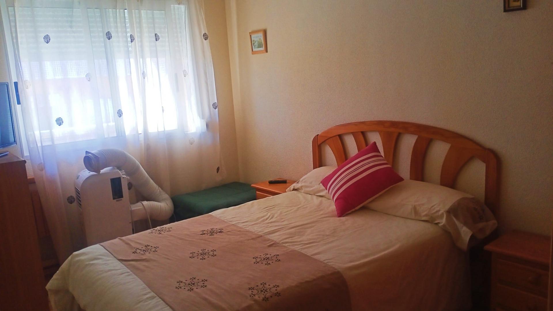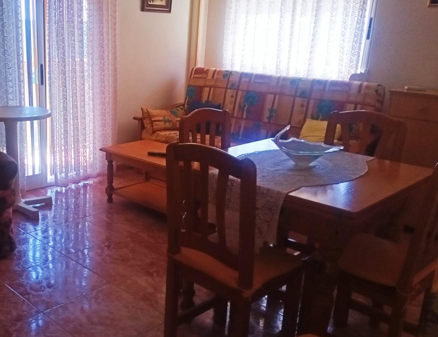 Este acogedor apartamento se distribuye en dos habitaciones con armarios, un baño completo, salón comedor con salida a balcón esquinero, cocina esquipada, aire acondicionado, cuenta con cochera-trastero, es el segundo piso de un un edificio de tan solo dos plantas, sin ascensor, con amplia escalera fácil de subir, esta situado a 150m de la playa y cuenta con todos los servicios necesarios al alcance.