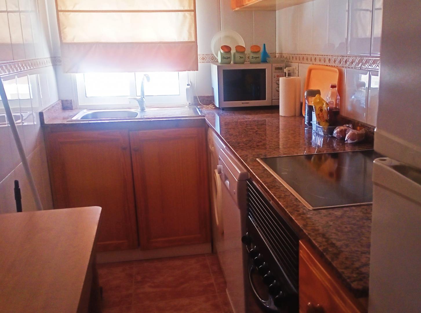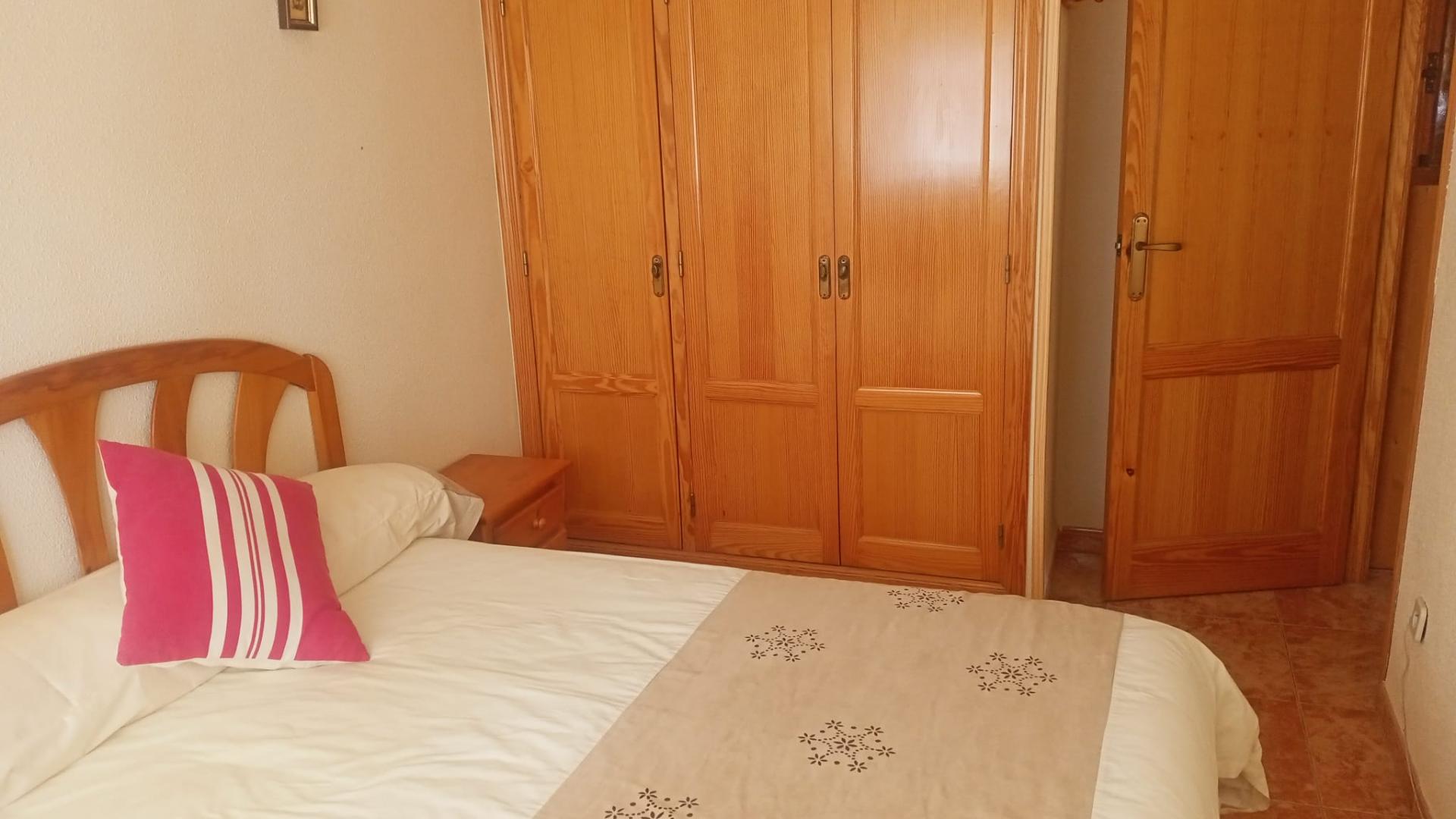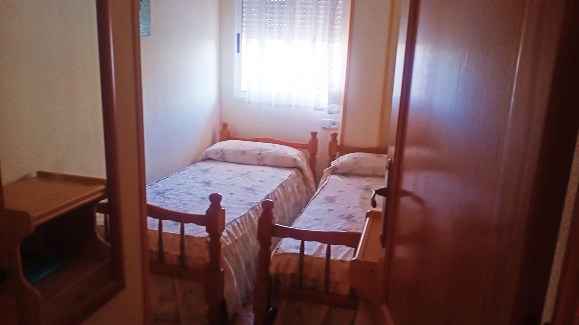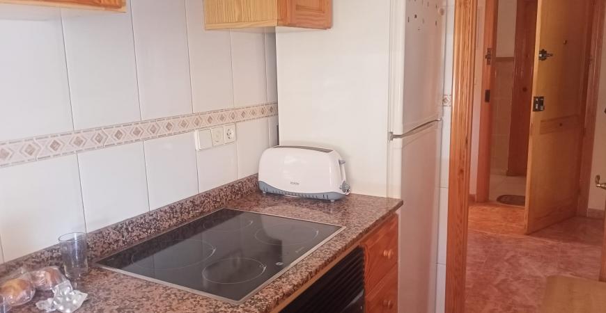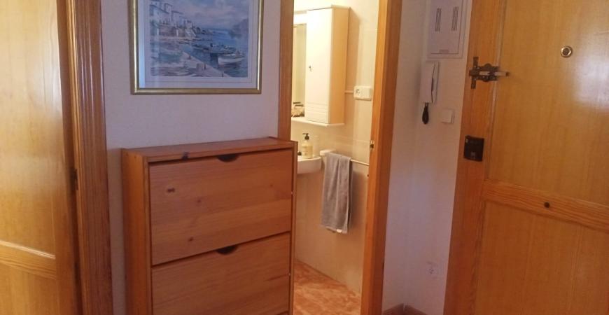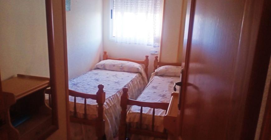 Este acogedor apartamento se distribuye en dos habitaciones con armarios, un baño completo, salón comedor con salida a balcón esquinero, cocina esquipada, aire acondicionado, cuenta con cochera-trastero, es el segundo piso de un un edificio de tan solo dos plantas, sin ascensor, con amplia escalera fácil de subir, esta situado a 150m de la playa y cuenta con todos los servicios necesarios al alcance.